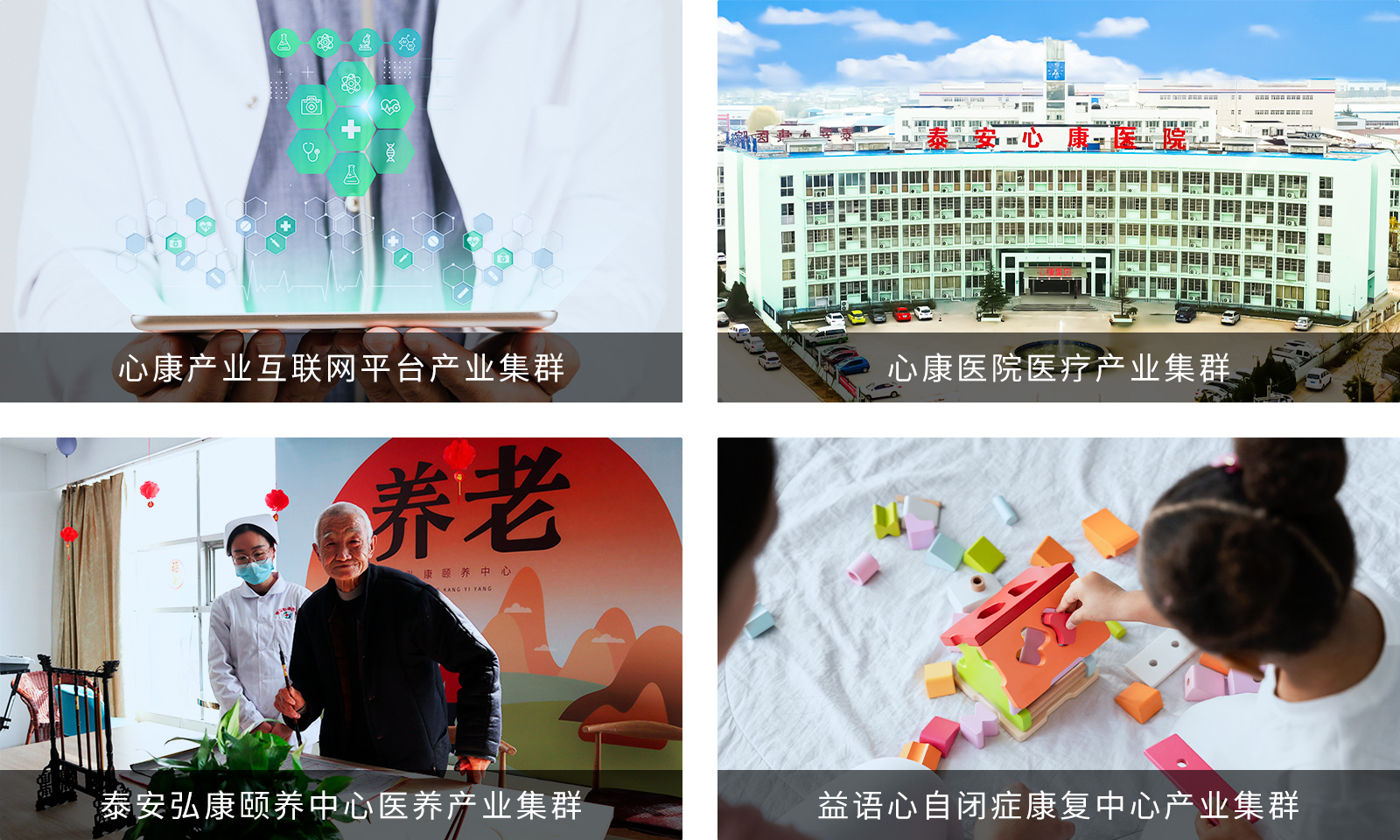 集团主要有四大板块,分别是:以美狮贵宾会医院为首的医疗板块;以泰安弘康颐养中心为首的养老板块;以院士工作站为首的科研中心;以唯选康为首的产业互联网平台。从2017年至今,美狮贵宾会集团励精图治,从无到有,由小到大,以医疗服务为平台,发挥复合资源优势,探索切实可行的医疗市场整合方案,同时也形成了具特色的管理思想和经营模式,正满怀信心,朝着围绕“医疗、养老、儿童康复、平台”四位一体战略,把美狮贵宾会·(中国区)控股集团打造成为心理康复领域的灯塔。